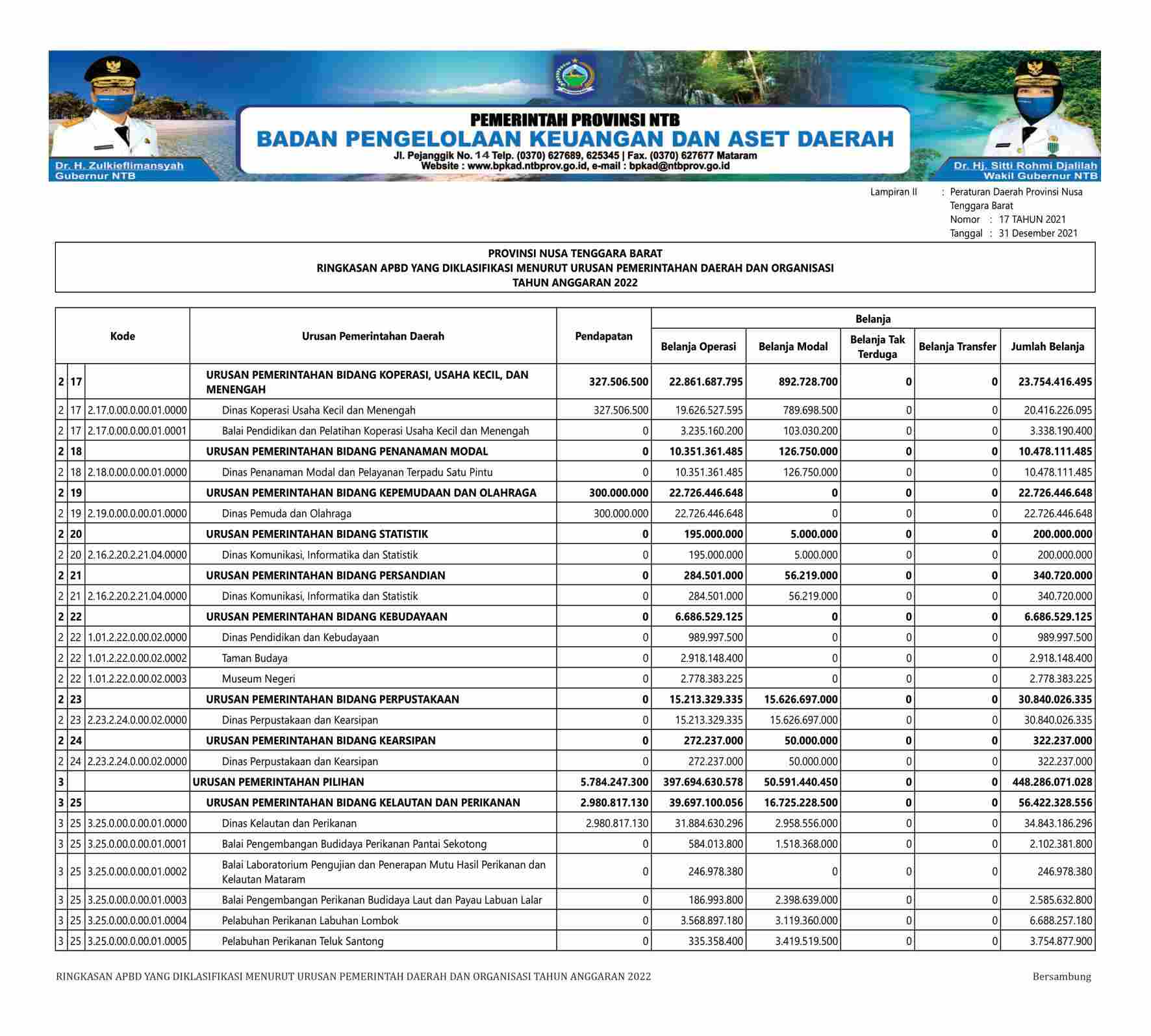 RINGKASAN APBD YANG DIKLASIFIKASI MENURUT URUSAN PEMERINTAHAN DAERAH DAN ORGANISASI TAHUN ANGGARAN 2022redaksilombokJanuary 16, 2022Adv #6Baca Juga : Ringkasan APBD yang Disklafikasi Menurut Urusan Pemerintahan Daerah dan Organisasi Tahun Anggaran 2021Don't MissRINGKASAN LAPORAN REALISASI ANGGARAN TA. 2024RINGKASAN LAPORAN REALISASI ANGGARAN TA. 2024HUT KOTA MATARAM ke-32Kendaraan Dinas Tak Digunakan Akan Dilelang, Inventarisasi Aset NTB Targetkan Tambah PAD