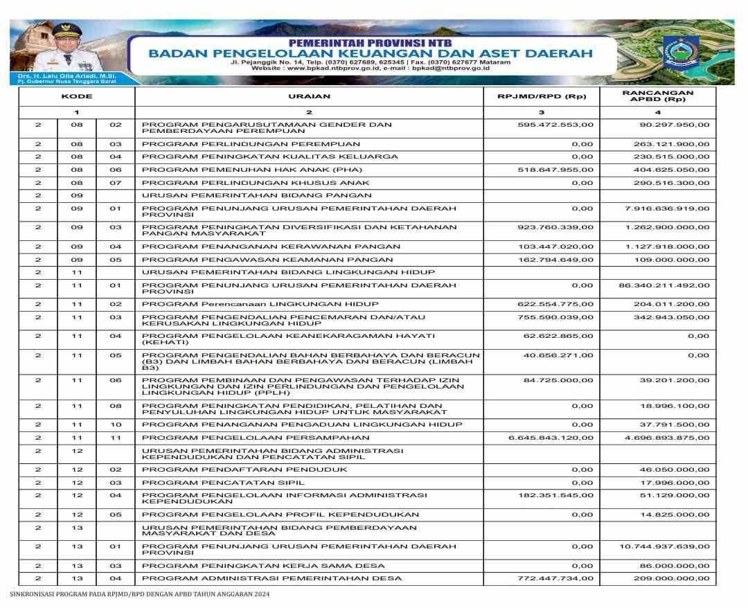 Sinkronisasi Program Pada Rpjmd/Rpd Dengan APBD Tahun Anggaran 2024redaksilombokMarch 6, 2024Adv #28Baca Juga : Ringkasan Penjabaran APBD yang Diklasifikasi Menurut Kelompok, Jenis, Objek, Rincian Objek, Sub Rincian Objek Pendapatan, Belanja, dan Pembiayaan T.A 2023Don't MissRINGKASAN LAPORAN REALISASI ANGGARAN TA. 2024RINGKASAN LAPORAN REALISASI ANGGARAN TA. 2024HUT KOTA MATARAM ke-32Kendaraan Dinas Tak Digunakan Akan Dilelang, Inventarisasi Aset NTB Targetkan Tambah PAD